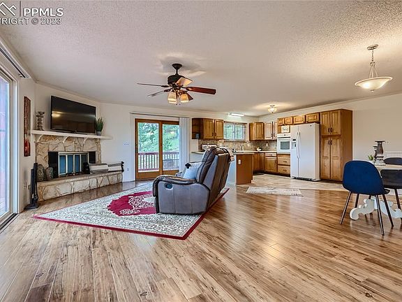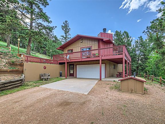 Colorado Mountain Home on an Acre.  Days start on your 475 square foot deck, watching the sun rise and bathe Pikes Peak’s “purple majesties” is stunning shades of pink and orange.  From your perch, you get a front row seat to the abundant wildlife frolicking below.    Your home sits at the end of a quiet cul de sac and offers jaw dropping views of Pikes Peak and rock formations like Sheep Mountain. Inside you’ll LOVE the open space with natural light flowing throughout.  The main level great room, invites you to sit a bit and on cool evenings, snuggle up to the wood burning fireplace with a cuppa cocoa or your favorite vino.    Your home offers two primary bedrooms with attached baths, one in the lower level and one on the main level.  The third bedroom, on the main level makes a great guest room, office, or gym.  This home has been meticulously maintained, new roof in 2014, insulated water meter, pressure tank and pump are less than 2 years old.    Perfectly located in a rural, mountain setting. You get the serenity of the mountains plus some perks… access to HOA pool, tennis courts, disc golf course, gym, and clubhouse AND you are just 11 minutes to historic Cripple Creek, 1 hour to Colorado Springs, less than 2 hours to world class skiing, and minutes from hiking trails and national forest.  Call today for your private showing.