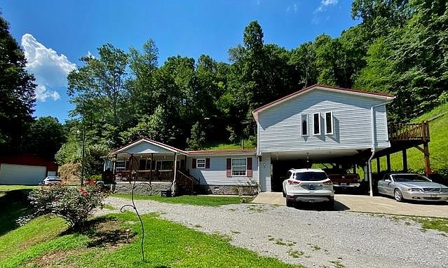 Wonderful home with private location! Approx. 15 acres with a front covered porch to enjoy the view. The living room has a gas fireplace and beautiful hardwood flooring. 3 bedrooms, 2 bath with very large eat in kitchen. The property has 2 car attached carport with bonus room over the carport. Bonus room has propane fireplace and decking for additional views. Detached garage has room for 4-6 vehicles with front and back garage doors. A 26 x 40 RV shed and 2 additional sheds for storage. Enjoy nature and the wildlife while being close to Pikeville. Must see this one to appreciate all the property has to offer.