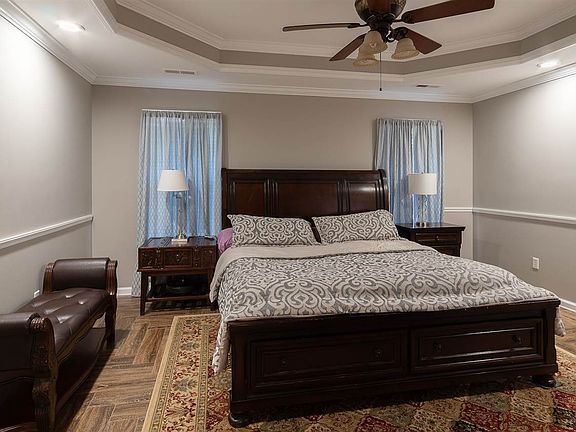 - MASTER BR DESC: Ceiling Fan, Walkin Closet, Crown Mold, Tile, Recessed Lighting, Trey, Double Vanity