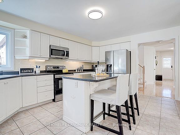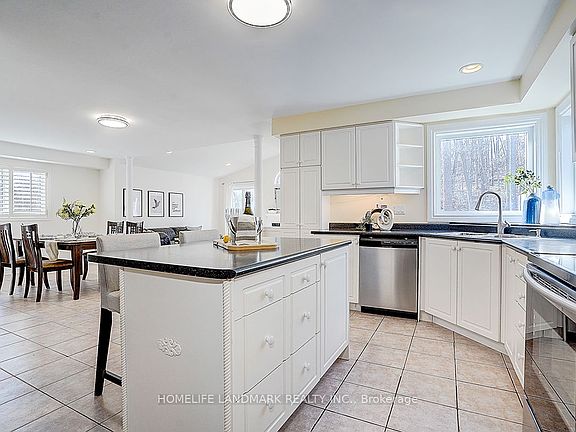 Stunning Detached Home Located in a sought-after neighborhood. Features a double garage with inside entry, hardwood and ceramic flooring throughout, and bright, sophisticated living and dining spaces. The spacious eat-in kitchen includes a breakfast bar, while the large family room impresses with a gas fireplace and soaring cathedral ceiling. Main-floor laundry and powder room add convenience. The primary suite offers a walk-in closet and a spa-inspired ensuite. Step outside to a beautifully landscaped backyard with a stone patio, in-ground sprinkler system. Backing onto a scenic forest and peaceful trail. Offers a rare blend of nature and privacy. Enjoy daily walks under a trees, vibrant fall colors, and a tranquil setting just beyond your backyard. Wilkins Walk Trail Just Behind Backyard and Wilkins Beach Steps Away