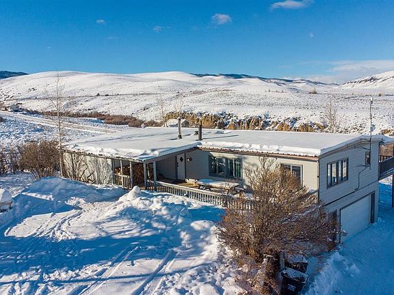 Opportunity awaits in Antelope Hills with over 2500 SF across two living spaces, plus an additional 585 SF garage! Situated on over half an acre, this large parcel offers ample parking, a sunny front patio, huge back deck and breathtaking views of the Anthracites and the Palisades! The open concept floorplan allows space to spread out, with a bonus room adjacent to the main living area upstairs. A sliding door in the dining room provides easy access to the deck, perfect for entertaining and relaxing. Three bedrooms and two bathrooms are also located on the main floor, which encompasses a total of 1560 SF of living space. Downstairs, a separate entrance opens to an additional 975 SF living area, including two bedrooms and a full bath. The basement garage provides extra room for storage with interior access to the downstairs living space. This property has incredible potential with possibility for rental income, multigenerational living, and employee housing. Antelope Hills offers scenic countryside living, with convenient water and sewer service available through the County and HOA. This 1975 (Pre-HUD) mobile home is permanently attached to a two-story foundation on .64 acre of land. Potential buyers must clarify with lenders if this unique property type qualifies for underwriting.