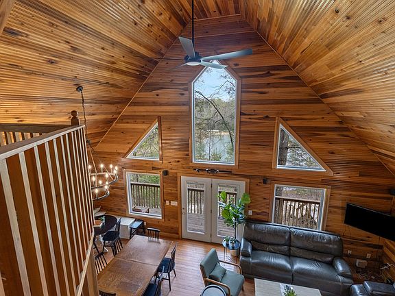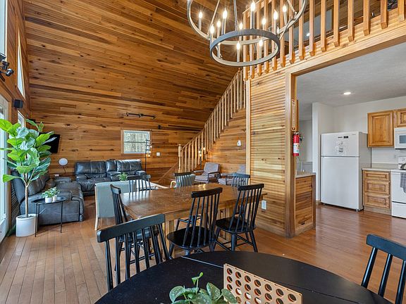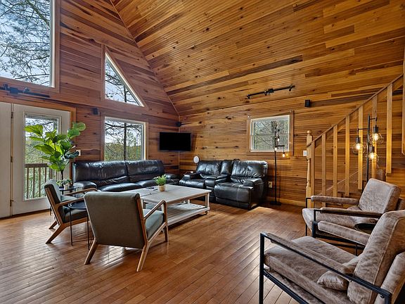 Feel at home in this family-friendly, large lakefront cabin located in the serene Red River Gorge Cliffview Resort area. This spacious retreat offers four bedrooms and four bathrooms, with seven queen-size beds, providing ample space for groups. Enjoy the open-plan living and dining area, perfect for gatherings, and take advantage of the private dock with lake access. The cabin features a concrete driveway accommodating up to four vehicles. Designed with large groups and families in mind, this cabin boasts two levels with four bedrooms, three of which have private en-suite bathrooms. The open-plan living room and dining area, with large bright windows, provide a cozy space to gather after a day of exploring. Relax in the living room with two large leather couches, armchairs, a fireplace, and a 55-inch smart TV. The dining area comfortably seats up to 14 people, and there's a bonus lounge space upstairs for games or quiet reading. Pets are welcome at this pet-friendly cabin, with a minimum fee of $350 per pet. The cabin includes a hot tub, fresh linens, towels, and essential starter packs with toiletries and cleaning supplies. Firewood is recommended to be purchased locally. Nestled in a tranquil location within the premier Cliffview Resort area, this cabin is near Red River Gorge, offering activities such as rock climbing, horseback riding, kayaking, canoeing, hiking, and zip lines. Popular attractions like Natural Bridge State Park, Nada Tunnel, and Miguel's Pizza are less than a 20-minute drive away, making it an ideal base for exploring the area. Smoking is not allowed inside the cabin, and no events, parties, or large gatherings are permitted. Check-in begins at 4 pm, and check-out is at 11 am. A minimum age of 18 is required to book. The cabin is located in a heavily wooded area, and guests may experience weather conditions or power outages beyond the host's control. The hosts strive to maintain the hot tubs, but mechanical issues may occur without quick resolution, and no refunds are provided for such occurrences.