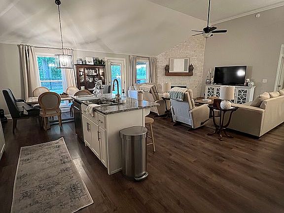 This home has an open concept living room and kitchen which is enjoyable for everyone to be involved in a conversation. There are homes to the left and right of the house but the back yard has a beautiful view of the former Highland Green Golf Course. It is less than a 25 yard walk to the walking track around the former golf course which provides a great place to walk/run or take your dogs for a walk. There is an aluminum fence in the back yard with two gates for access. The gates to the fence do have an option to be locked. There is a three vehicle paved driveway.