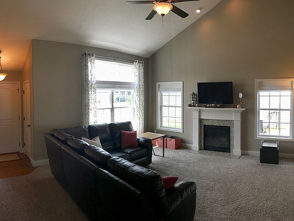 Seller will pay 3% commission to buyer's agent. This beautiful 1.5 story home is conveniently located on the east side of Bloomington in the Harvest Pointe Subdivision. This home has an open floor plan with the master bedroom and ensuite bathroom on the main floor. This home has so many features to highlight: fenced-in back yard, no back yard neighbors, finished basement equipped for home theatre, large laundry/mud room, eat-in kitchen, 18 ft vaulted ceiling in the living room, stainless steel appliances, granite countertops, hardwood floors in the entry and kitchen, his and hers walk-in closets, gas fireplace, and an oversized 2 car garage. Call, text, or email Bree at (217)520-6667 or babrink4@yahoo.com.