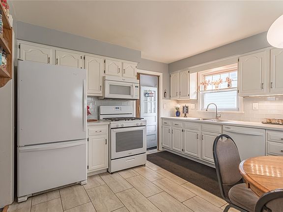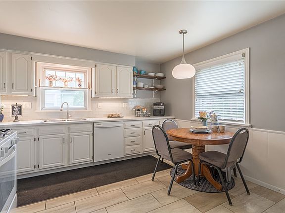 CHARMING 2-bedroom Cape Cod home with potential for additional bedrooms in the attic. Features include an eat-in kitchen with a separate desk area, partially finished basement, and a detached garage. The updated kitchen boasts ceramic tile flooring and backsplash, complemented by plenty of natural light throughout. Neutral paint tones enhance the spacious hardwood-floored rooms. The partially fenced yard completes this move-in-ready gem, offering both comfort and potential. Enjoy the outdoors without the bugs in the screened sunroom. Newer windows. Freshly landscaped. Delayed negotiations until 7/23. All offers due by 10am.