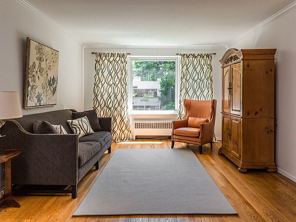Elegant Carlton Terrace located in desirable Lawrence Park West. Spacious 2 bedroom/2 bath apartment with DEEDED Garage Parking for one car. Pristine condition - freshly painted and newly carpeted bedrooms. Renovated kitchen with full size appliances - room for a small table. Private balcony with tree top views. Hardwood floors throughout. Ample closet space. Common laundry. Easy walk to Bronxville Village movie theatre, restaurants, shops and Metro North Station. For those that would rather not walk, the Beeline bus stop is 40 yards from the buildings entrance. 30 minute train ride to Grand Central Station.