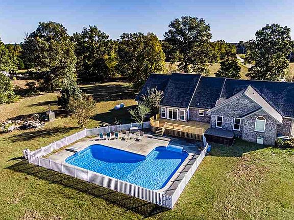 Secluded brick home on approx 43 acres w/20x40 in ground pool, new deck, 20x24 detached shop, 24x24 barn w/metal roof, some fencing from previous livestock, above garage apt or 5th bedroom w/bathroom and kitchen counter/sink, just awaiting your special touch to make this a show place once again! Open floor plan and vaulted ceilings. Wood boiler that can heat entire home and heat water. Enjoy sunsets from the large deck and sparkling pool! Home located at the end of a gravel road offering seclusion and privacy yet only 10 minutes from AL/TN line. Per seller, new roof and gutters in 2016 Property sold "AS IS".