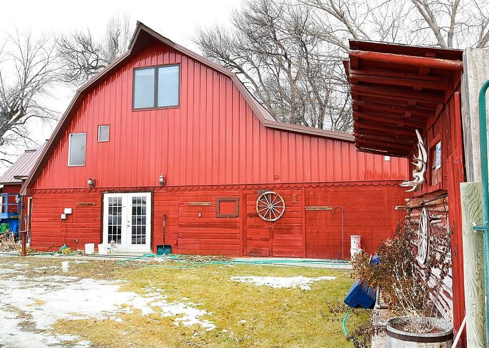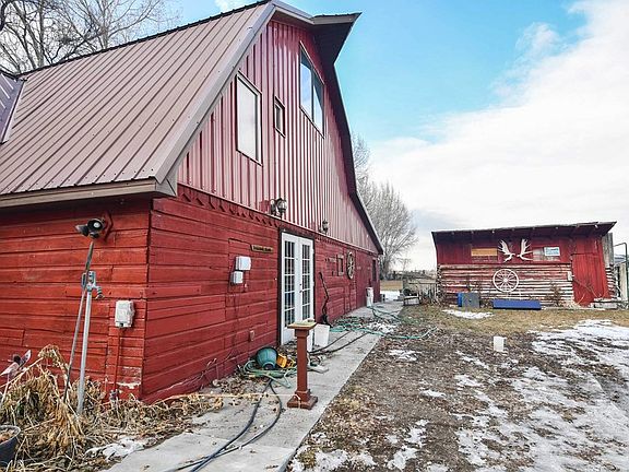 Talk about an amazing property! This unique home sits on almost 3 acres, with water rights. 100 year old barn completely restored into a home with attached 2 car garage. The massive great room with propane fireplace is open to the kitchen with large island/bar and dining area. Real hardwood floors and beautiful log beams make this home stunning. 1 bedroom with large walk-in closet on the main floor and upstairs you will find 1 very large bedroom with full bath and hook ups for an additional washer and dryer. 1 1/2 bath on main floor. There is a den/bonus room off the Great room. Tons of storage and built in shelving throughout. A stones throw from the back door is a pole lean-to that is fully insulated with shelving from floor to ceiling and power, making this a wonderful place for that large freezer and food storage. Mature landscaping, fenced backyard, covered patio and firepit. Perfect set up for horses with horse barn, tack shed with hitching rails, corrals and cross fenced pastures. There is 30x30 shop with loft. All outbuildings have power. Property is set up for both flood and pump irrigation from the canal. Dont miss out on the opportunity to own this one of a kind property! Buyer to verify square footage.