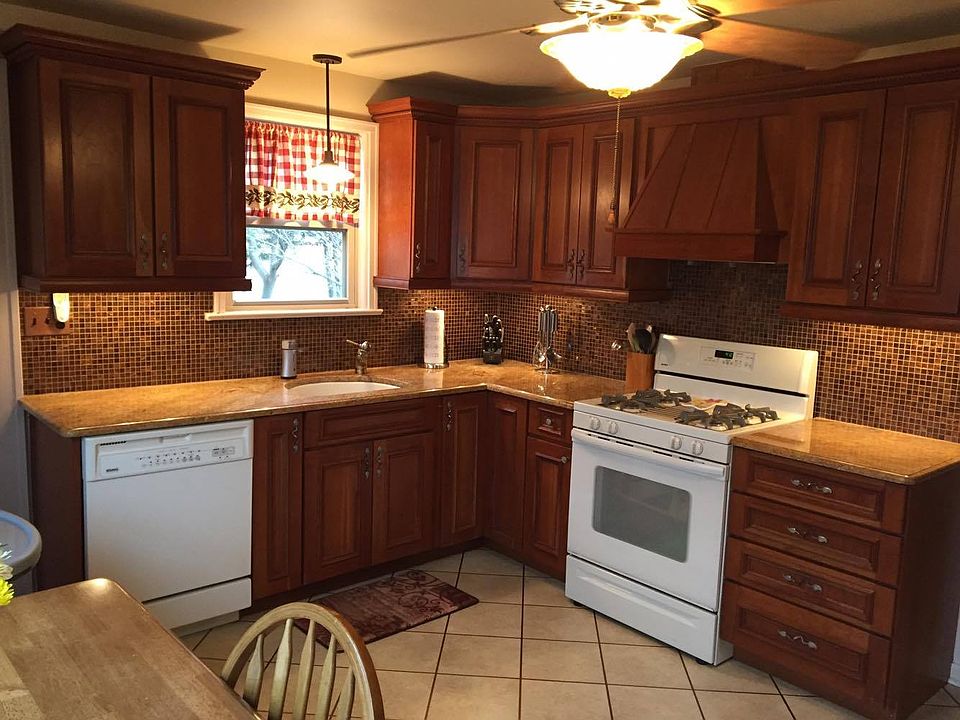 Perfect colonial w gorgeous updates. Renov LARGE EIK has quality wood cabinets, granite Ctrs, and glass tile back splash. Updated 2 full BAs w neutral stone look tile.Formal DRm and LRM w hrdwd floors. Partially finished Bsm't has Rec Rm w bar and outside exit, large storage rm, and laundry room. Newer tilt thermal windows, updated elec panel, recess lighting, and newer gas furnace. Newer Vinyl siding w lifetime guarantee transferable to new owner. Spacious fenced-in yard w patio. Possible 3rd bdrm or great office, nursery, dressing room, etc.
