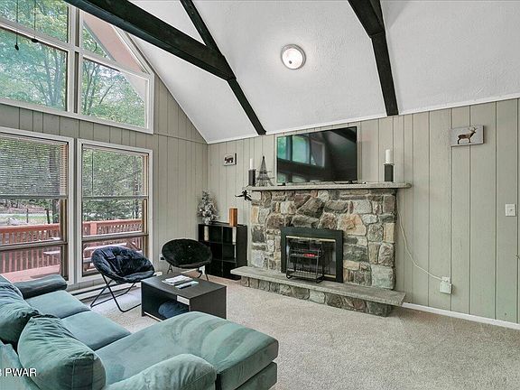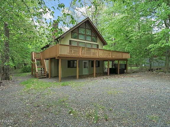 5 Bedroom 2.5 Bath CHALET home is being sold FULLY FURNISHED for your immediate use in the Desirable Big Bass Lake Community! The open Floor Plan is perfect for you and all of your guests to spend quality time together featuring Cathedral Ceilings, Wood Burning Fireplace, Updated Kitchen, and so much More! In the Lower Level you will find a Generous Family Room with Games, 2 Additional Bedrooms, and a Full Bath! The top floor provides a Private Bedroom with a half bath and Loft Area! Spend some time relaxing outdoors on the Massive Deck or in the Hot Tub! The community offers Wonderful Amenities and Easy Access to I380! Close proximity to Major Poconos Resorts and Attractions! Make your appointment for a private viewing today!