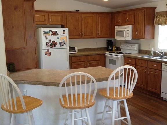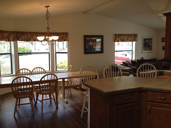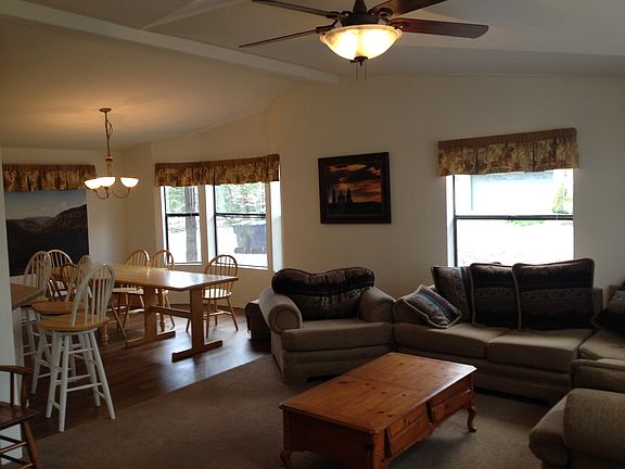 Beautiful treed "lot and a half" on quiet street. Main structure is a 2008 Cavco home with 3 bedrooms and 2 full baths. Great for entertaining with large open kitchen/dining flowing into great room with fireplace. Vaulted ceilings, skylight and prismatic dormer windows give this an open cabin feel. The large 14x18 (2009) Trex deck is perfect for outdoor entertaining and stargazing. Accessory structure is 16' x 39', permitted, fully finished and has been used a game room and bunk room as it has bathroom and heating. Atrium door could be reconfigured to allow parking/storage of motorized toys.