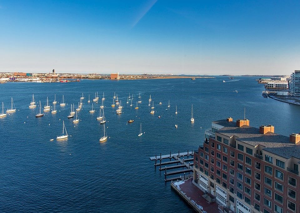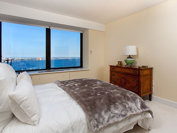 MESMERIZING and unobstructed direct views of Boston Harbor from every window in this superbly renovated residence , worthy of architectural digest , in a 24 hr concierge building. This home has been totally gutted and renovated with the highest quality rarely seen. Living room/dining 2 large picture windows overlooking the Harbor, a corner office with elegant built-ins and shelving , decorative and creative ceiling lighting. Grand designer kitchen with SieMatic cabinetry and Miele appliances, The Master bedroom with views, custom-designed closets, a beautiful master bath with unique tile work and fixtures that sets this home apart from any other. Gorgeous grass and pool area with BBQ gas grills.