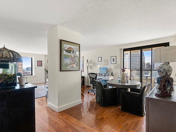 Stunning views of Boston's historic Waterfront & Skyline await at this 19th Floor expansive unit. With over 1200 square feet, this open floorplan is designed for modern living. Offering a spacious living room with French Doors opening into the primary bedroom maximizing two rooms of water views. Custom finishes throughout include hardwood floors, an open kitchen with stainless appliances and a built-in kitchen bar with abundant storage for food & beverages. An additional living area makes a great work/work out from home space or dining area with private balcony and incredible views of Downtown Boston! Just minutes to the Financial District, Faneuil Hall, restaurants of the North End, Downtown and The Seaport. All of this in a premier, concierge building with on-site management and a seasonal, harbor-side pool with landscaped grounds. City living at its finest! Tenants in place through 4/30/24, possible to move earlier. Please allow 24 hours' notice for showings.