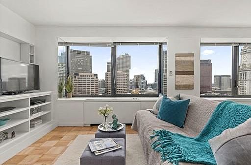 Sweeping views of the Boston skyline feature prominently throughout this outstanding home, high above the city. Beautiful, open living/dining room is framed by two large sets of windows and fantastic natural light, with built-ins in the media area. Modern kitchen features gas cooking, stainless steel appliances, granite counters and a convenient breakfast bar. Extra large bedroom with generous storage including a built-out walk-in closet. Fantastic storage space throughout, with hardwood floors and central heat and air conditioning. Harbor Towers offers true plug-and-play living, with 24-hour concierge service, gated entry, and a variety of amenities including a seasonal in-ground pool with sun deck and BBQ area. Just off the Rose Kennedy Greenway, this central location is just steps from Financial District, Seaport, and North End, with easy highway and public transportation access - you couldn't ask for a more convenient downtown location. Rental parking available.
