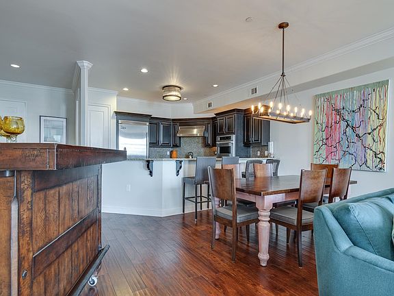 Stunning three story condo w/2BR/2.5BA & beautiful River & Downtown views.Open floor plan featuring beautiful hardwood floors & 10ft ceilings.Fabulous Chefs Kitchen w/Viking Pro appliances opens to the Gracious Dining & Living room.Luxurious master suite complete w/steam room,multi head shower,double vanities & walk in closet.3rd floor bonus room w/wet bar steps out to the private rooftop terrace & gorgeous views.Gated covered Parking w/ 2 assigned places.Plus a Private storage unit & courtyard!