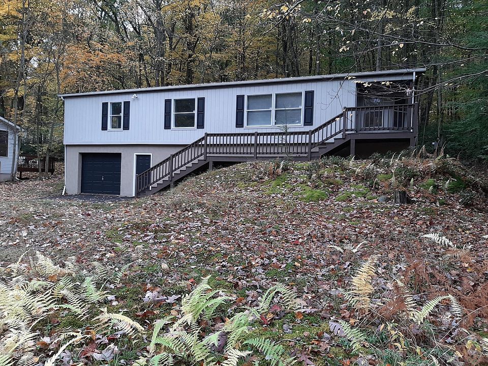 Beech Mountain Lakes raised ranch manufactured home on a permanent foundation. Home features large living room with high ceilings, dining room, office, kitchen with lots of cabinets and new gas stove, laundry room, 2 bedrooms and 2 baths. Master bath has large garden tub and shower. Full basement with 1 car garage. Nice private deck. Fresh paint and new flooring. Move in condition.