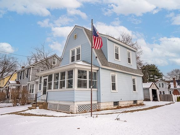 Highest & Best Offers by 2/24/25 by 12 Noon! Charming Vinyl Sided Colonial that's situated on a pretty corner lot in a nice neighborhood that's convenient to all your needs! Featuring as per seller: Gas heat, Utica Boiler, Gas Hot Water Tank (2021), Chimney Liner installed in fireplace, Mostly Replacement Windows, Newer Exterior Storm Door on Enclosed Porch, Newer Insulated Front Door & Wood floors in many rooms. Just imagine the difference & reap the rewards once you bring your creative talents, do some painting & renovating! You are welcomed into a sunny encl front porch that'll be your favorite relaxing spot & serves as terrific mudrm during inclement weather. A lovely livrm w/wood flrs, a cozy fireplace adds a special touch to the spacious room that flows into a cheerful dining rm w/built-ins opens to a bright kitchen w/pantry. The 2nd Flr has a full bathrm & 2 large bedrms w/roomy closets & wood floors! Plus a full basement w/bathrm potential! Endless Possibilities & Potential!