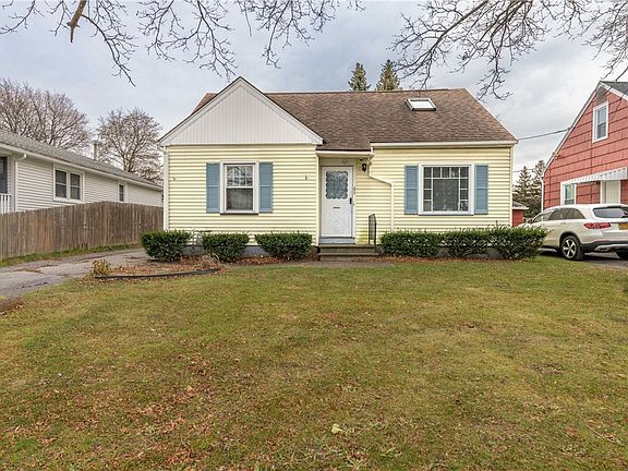 Welcome to 65 English Rd- a 3 bedroom, 2 full bath Cape Cod in a great neighborhood in Greece. This wonderful home features hardwood floors and fresh paint, a good-sized, bright living room with arched entryway, a kitchen with newer flooring, a dishwasher, plenty of cupboards and backsplash plus a dining room that is perfect for entertaining. There is also a first floor bedroom and a first-floor full bath. Upstairs there are 2 more bedrooms, a 2nd full bath and a bonus area that leads to an upper deck through a slider. You will love the full, partially finished basement with enough room for a family room, exercise/entertainment area or both! There is also an enclosed porch that is perfect for your morning coffee when it’s a little too chilly to sit outside in the fully fenced in, private backyard. Delayed negotiations until 12/19 noon.