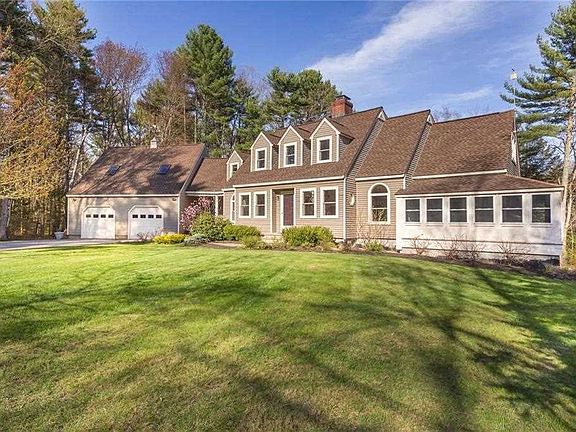 Beautiful country Estate on a very private setting bordered by Cider Hill Creek. With conservation land directly outside your back door, this home is perfect for the nature enthusiast, with dozens of trails for hiking, biking, cross country skiing and berry picking. This sprawling light filled 11 room home boasts updated kitchen with stainless steel appliances and gleaming HW floors. Home has been freshly painted and shows like new. Fabulous master with updated bath, large slate shower, jacuzzi tub, copper sinks and granite. Four large bedrooms, a beautiful wood beamed office with attached sunroom, a separate playroom/studio. A beautiful Hearthstone wood fireplace graces the main family room. Home is equipped with a whole house generator. Enjoy nature from the huge composite deck overlooking the privacy of your own wooded sanctuary.