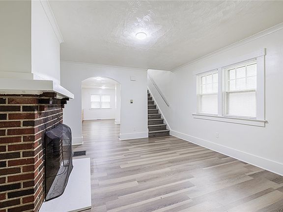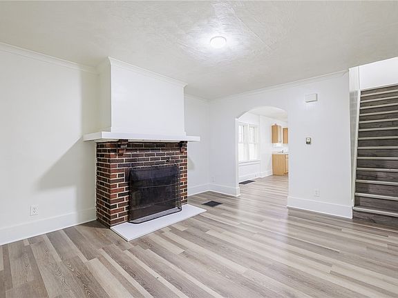 LOOK NO FURTHER! A beautifully renovated home awaits you! Step inside and be amazed by the spacious and inviting layout! The living room is bathed in natural light and features a charming brick fireplace to give the living room a cozy feel! Doorway surrounded by leaded glass windows lead you to a serene enclosed front porch, ideal for unwinding after a long day. The kitchen seamlessly flows into the dining area, perfect for entertaining guests. The interior has been freshly painted and boasts stylish new flooring. Upstairs, you'll discover two bedrooms with plush carpeting and a fully updated bathroom. This home is a blank canvas just waiting for your personal touch to make it your own! All offers are due Monday 6/17 at 2 pm.