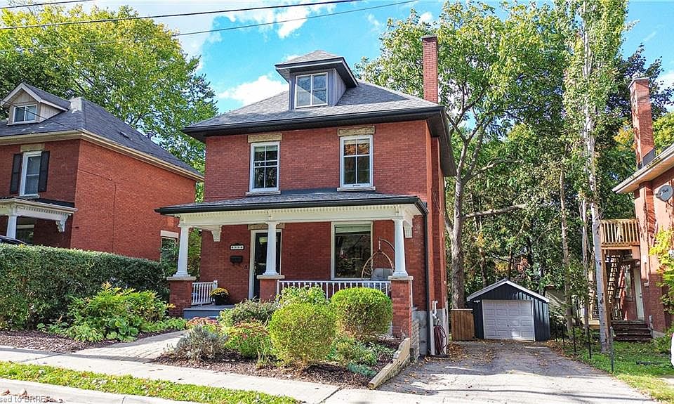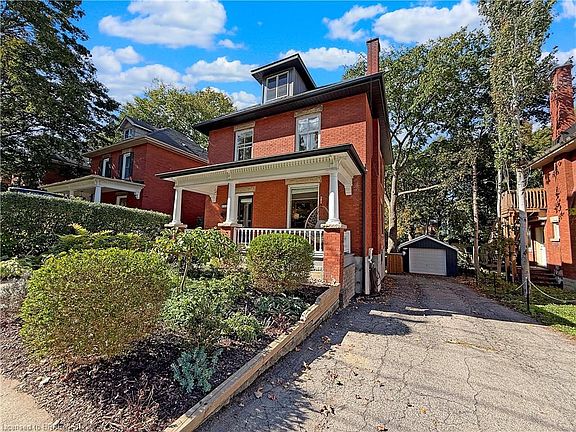 Located in the highly desirable Old University neighbourhood, 65 Forbes Avenue combines the charm of a classic red-brick century home with the comfort of thoughtful modern updates. This beautiful three-storey residence features four bedrooms and three bathrooms, offering generous space for family living. The welcoming covered front porch leads into an inviting interior with high ceilings, hardwood floors, and a cozy living room fireplace. The bright, updated kitchen is a chef’s delight, featuring granite countertops, ample cabinetry, and a character-filled antique island—perfect for cooking and entertaining. The second floor includes spacious bedrooms, a beautifully finished bathroom with a clawfoot tub, and the convenience of laundry on the same level. Upstairs, the third-floor primary suite (converted in 2013) serves as a peaceful retreat, complete with large windows, a walk-in closet, a private ensuite, and scenic treetop views of this historic neighbourhood. The fully finished walk-out basement provides additional living space, ideal for guests, recreation, or a home office. Modern upgrades include enhanced electrical, heating, plumbing, and a reverse osmosis water system, ensuring comfort and reliability. Outside, the property features a large backyard and a detached garage, offering plenty of space for outdoor enjoyment. Perfectly situated within walking distance to the University of Guelph, downtown shops and cafés, the farmers’ market, GO Station, Cutten Fields Golf Club, parks, and river trails—this exceptional home offers the best of heritage charm and modern living in one of Guelph’s most sought-after locations.