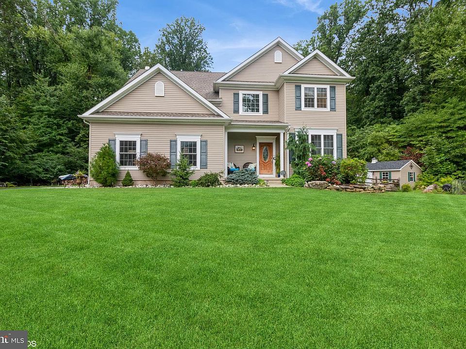 This beautiful East Rockhill custom home is situated on a 2.37 acre lot in an enclave of only eleven homes located in the Pennridge SD. Situated on a truly amazing and lushly landscaped yard with spectacular gardens, large boulders & mature trees. Enter the main level into a 2 story foyer and a very open floor plan. 9 foot ceilings and hardwood floors throughout. New kitchen with granite counter tops, ceramic backsplash & stainless appliances. The family room offers a floor to ceiling stone, wood burning fireplace and plenty of windows offering natural light and overlooks the back yard. The master bedroom suite has separate shower and soaking tub and a large walk in in closet. Second floor laundry room & spacious bedrooms with ceiling fans. Full finished daylight basement with plenty of storage, sliders to outside & multiple finished rooms conducive for many uses (office, 5th bedroom, 2nd family room, etc. New engineered deck that surrounds the above ground pool, 20 x 10 storage shed with double doors, unbelievable firepit area loaded with charm, large stone pavers & huge boulders. ADT security system, hardwood floors, recessed lights, 9' ceilings, newer A/C, newer hot water heater and the list goes on. This is truly a beautiful home and is lovingly maintained - true pride of ownership abounds. All showings begin at open house Sunday.8/20. at 1PM