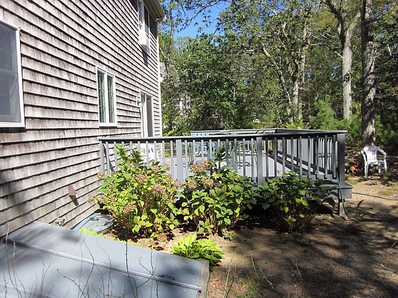 This North Eastham, ocean side contemporary, Cape sits on a wooded 1/2 acre at the end of a private cul-de-sac. Built in 1998, the home offers 3 BRs, 2 Baths, beautiful Southern Pine floors in living/dining/kitchen areas, Master BR, full bath and laundry, on 1st floor with 2 large BRs and full bath on 2nd level. Enjoy total privacy while relaxing on the 12'x 16'deck. This pristine Cape is in move-in condition and has seen only occasional, seasonal use by owner/family.
