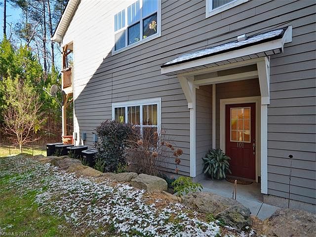 Move-in-ready ground level end-unit offers inviting living room with gas fireplace, open kitchen, spacious master bedroom, neutral baths and a coveted one-car garage. Back porch is ideal for enjoying the outdoors. The unit offers fresh new paint, including doors/windows/trim. Fox Glen is a sought-after community with clubhouse, pool, fitness center and walking trails. Tucked away yet minutes to South Asheville shopping and restaurants. One mile to beautiful Fletcher Park. Don't miss it!