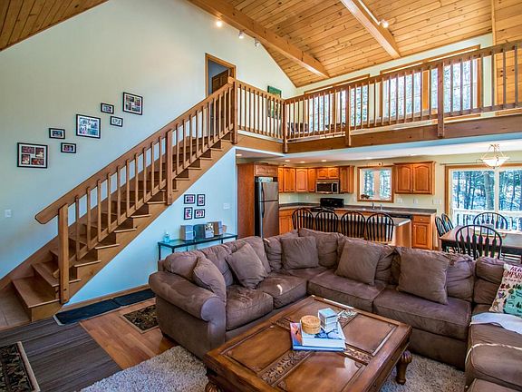 Bright & sunny contemporary cape with an open living design, a gas log fireplace & pine cathedral ceiling creating a comfortable upcountry ambiance. 2 main level bedrooms and an upper level primary ensuite bedroom with a beautiful open loft sitting area. Large family room in the walk-out lower level, plus an office, 3/4 bath & a laundry/utility room. Minutes to Conway Village, North Conway shops, great dining, acres of National Forest, wonderful downhill and cross-country skiing and access to Pea Porridge Pond. With some trimming, views of Mt. Washington could be enhanced. 3 BRs/3 Baths