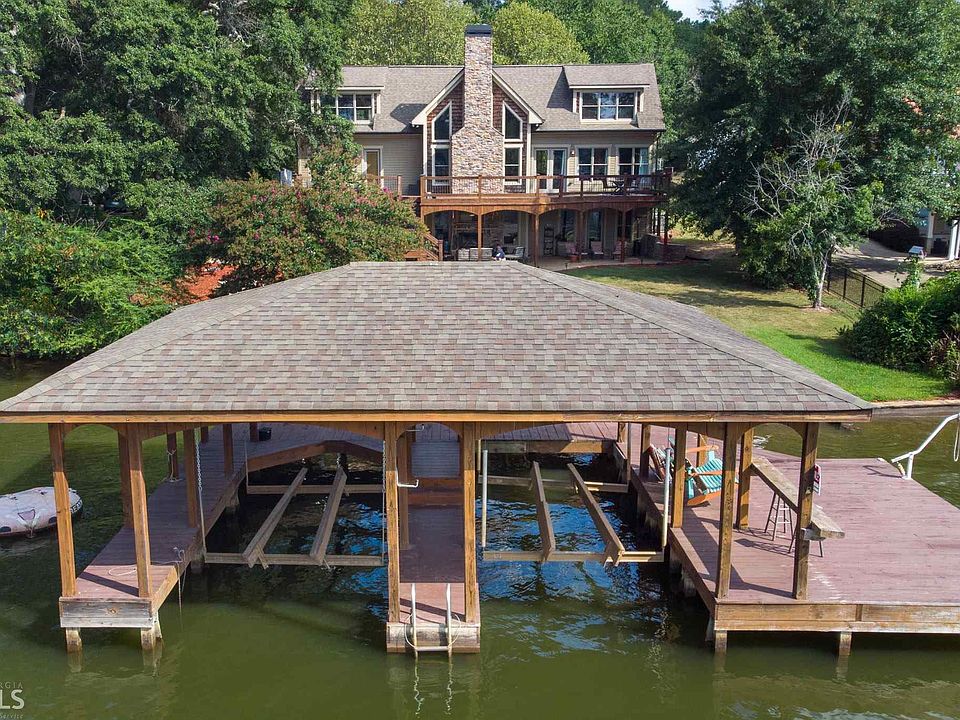 Spacious Lake Jackson home on large Deeded lot is awaiting a new family!!!!Lake Jackson Home! Beautiful Custom Craftsman home features an open floorplan with huge windows in the family room,with a view of the lake from every room in home,100 yr old Pine floors throughout home, granite countertops in kitchen, custom cabinets, Master on the Main, Two bedrooms and full baths with loft on the upper level,two bedrooms and one and a half baths on lower level, In Law suite in the finished basement or just plenty of room for all family and friends, there is something for everyone with outdoor fireplace, hot tub, outdoor surround sound, TV, and private swim cove. The amazing covered dock has lifts for two boats and parking for more. There is also a basement boat garage located in the rear of the home. You will love to call this Home! Must See! Make us an Offer! There is room to build additional garage or storage as well.