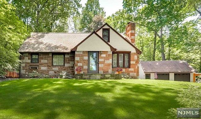 Welcome home to your private oasis! Set atop a knoll on almost a full acre with picture perfect views of the Ramapo Mountains, this 2300+ sq ft English cape cod is a peaceful retreat only minutes from town and with easy access to the commuter train and Routes 287, 17 and 208. Upon entry, the first floor offers a living room with stone fireplace that flows into a formal dining room, both with hard wood floors. The kitchen, featuring several new appliances, leads to an expanded family room with a bar and sliding doors to the spacious deck and patio. A large bedroom and full bath complete the first floor. The second floor enters onto a sitting/office area and provides two large bedrooms with WICs and a full bath with jacuzzi tub. The expansive basement is partially finished with plenty of room for both a den and storage. Visit 65 Glasgow and start enjoying this lovely home and beautifully landscaped acre of property!