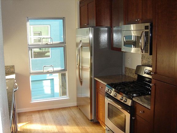 Beautiful 2 Bedroom/2.5 Bath Emeryville townhouse. No neighbors above or below you! Desirable open floor plan with attached, 2 car ground floor garage. The spacious kitchen and living room are on the second level with the bedrooms and bathrooms above. The upgraded kitchen boasts all stainless steel appliances including a gas range, dishwasher and garbage disposal. Hardwood floors throughout the living room and kitchen, with carpet in the upstairs bedrooms. Washer/dryer and ample storage space included. HOA, water and garbage paid by owner. Renter pays gas/electric and any other services(cable, internet, etc.) The unit is fiber internet ready. No smoking allowed. With easy access to all the shops and restaurants in Emeryville (including Trader Joe's, Bay Street Mall, Target and many more), it is also walking distance to Amtrak. Central to East Bay and a quick commute to San Francisco via bart or Transbay bus. City of Emeryville also offers a free shuttle to the MacArthur Bart Station daily. Sorry, no pets. 1 year lease and $3200 deposit required. Please email to view or with any additional questions.