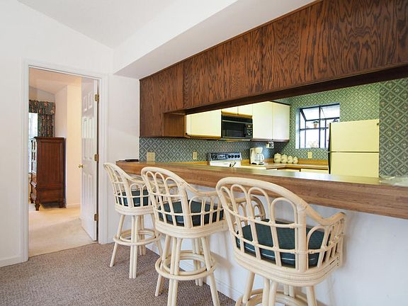 Much sought after split bedroom plan! Large wrap around deck. Nicely furnished! Great kitchen with garden window and large opening to living room. Breakfast bar is great when entertaining especially. The furniture in guest bedroom does not convey(family heirloom) A few personal items also do not convey. There is a $100 transfer fee at closing to CAS which handles the Condo Assoc.