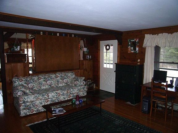 Expanded cape style log home with in-law quarters, the house has great views to the north and east. There is a screened porch that runs the length of the front of the house for those warm summer nights. The living room has hardwood floors and a brick faced fireplace and brick hearth. The living room also has access to a deck that is on the north side of the house that has the views to the north and east. The dining room has hardwood floors, a built-in china cabinet, a lighted ceiling fan and a breakfast counter. The kitchen has ample storage space in the cabinets and pantry. The den which is a bright room from the east and south windows has carpeting and a sliding door that leads out to the deck on the north side of the house. The first floor bath has a shower stall and small utility room area. The largest bedroom on the second floor has a double closet with views to the north and east. The second bedroom has a skylight that was new in 2005 and has storage in the eves. The third bedroom has a skylight also new in 2005 this bedroom has a built-in head board for a single bed. In this bedroom there also are built-drawers in the eves. The lower level entry way has a mud room/laundry room. To the right of the lower entry is the family room with a pellet stove that just needs to be finished off with a ceiling. The lower level also has a separate entrance for the in-law apartment with its own full kitchen and bath. The house does come with a one year home warranty for the buyer. Neighborhood Description The area is a mixture of older and newer houses in a location of town the is called Lenox Dale. The older homes in the area were farm houses that would farm the surrounding land. Although the farms are gone the area does still have some large open feilds.