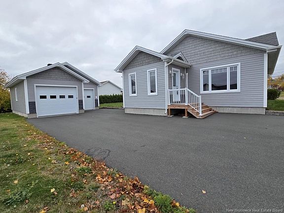 Beautiful 2022-Built Bungalow – Modern, One-Level Living Just Steps from the Beach!! This well-designed 2022-built bungalow offers comfortable, low-maintenance living all on one level, located just steps from the beach in the heart of Petit-Rocher and only minutes from all amenities. Inside, you'll find a bright and spacious open-concept layout featuring a kitchen with lots of cabinetry, a generous dining area, and a large living room complete with a built-in electric fireplace, heat pump, and large windows for plenty of natural light and amazing views of the sunset over the ocean!! The home includes 2 bedrooms, including a primary bedroom with a 2-piece ensuite and walk-in closet, a full bathroom with attractive cabinetry, and a separate laundry room. Pot lights throughout add to the clean and modern feel. Built with efficiency in mind, the home offers a spray-foamed cement crawl space, providing excellent insulation and tons of storage. Outside, the property features a double paved driveway, a detached garage with two doors, interior water taps, a backup generator panel, and a storage shed for added convenience. This move-in ready home is perfect for those looking for modern amenities, easy living, and a quiet coastal lifestyle—with the beach just a short stroll away. Schedule your private showing today!