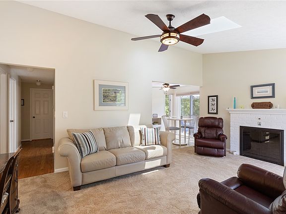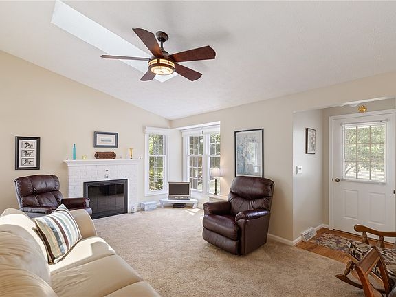 Rarely available end unit on a cul-de-sac street that will be sure to impress. This 2 bedrooms and 1.5 bath home is outstanding one floor living, with a full basement for plenty of storage. Eat in kitchen with stunning cherry wood cabinets and stainless steel appliances. The living room boasts a cathedral ceiling complete with a skylight with a 3M window film to keep the room cool and eliminate UV rays. Updated gas fireplace (2022) perfect for those chilly winter days. 1st floor laundry makes for ultimate convenience. The sliding glass door leads to a deck overlooking a beautifully and professionally landscaped green space. New water heater (2020). New storm door (2020). New vinyl windows less than 10 years old. Delayed Negotiations until 6/13/2023 at Noon.