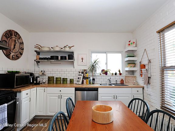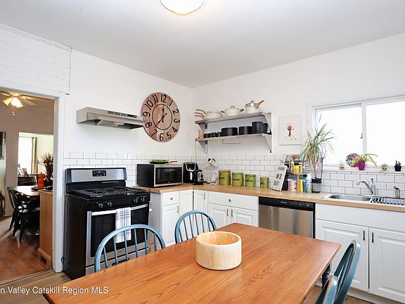 Welcome to this well-maintained two-story home located in the heart of Kingston with easy access to local shops, dining, parks, the rail trail and more! Offering three bedrooms and one full bath, this property is designed for comfortable and convenient living. As you enter you are greeted with high ceilings and the open living area that boasts natural sunlight throughout. The main level includes a dining area, spacious living room, and a bedroom for added convenience. The kitchen features a tasteful design providing tile backsplash, butcher block countertops, and stainless-steel appliances. Upstairs, you'll find two more bedrooms, a large office/playroom, and an updated bathroom. Additional storage is available in the walk-up attic and the unfinished basement, which also houses the washer and dryer. Step outside to the oversized backyard, perfect for hosting family BBQ's or simply relaxing in your own private space. Don't miss the owned solar system that provides energy efficiency and adds incredible value to this home. Take a leisurely morning stroll to enjoy a cup of coffee at the local café just down the road, or wind down your evening with a live show at UPAC. With municipal sewer, water, and natural gas, this home has everything you need, come take a look! Recent updates include Roof (2019) Kitchen (2020) Furnace (2014) Bath (2021) Backyard Fence (2022)