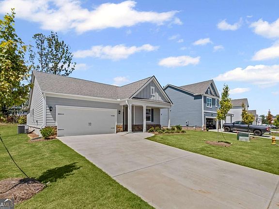 Welcomes you to 65 Grove Springs Court, a new construction single-family home in Parkside at Carter Grove community. This Cali, 4 bedroom and 2 bathroom ranch floor plan home, has a lot to offer your family in the 1,774 square feet. Your family can enjoy spending time outside in the large, flat backyard. A long foyer leading to the main living area and bedrooms welcomes you as you enter this home from the front porch. At the front of the home, 2 secondary bedrooms are split by the guest bathroom. Each bedroom boasts a walk-in closet, including the 3rd bedroom that is the perfect size for an office space or guest bedroom. The laundry room sits right outside of this room providing easy access for all to do laundry. Continuing deeper into the home, you walk into the open concept kitchen and living area. The chef in the family will enjoy all the kitchen has to offer including, stainless-steel appliances, granite countertops, white shaker cabinets, and a large walk-in pantry. An oversized island separates the kitchen from the dining area. Enjoy spending time with family and friends in the spacious living room or outside on the covered back patio. The primary suite is tucked away to the back of the house, off of the living room, providing privacy homeowners can use to relax and unwind. The primary suite comes with a considerable walk-in closet, dual vanity, and separate walk-in shower and soaking tub. Copyright Georgia MLS. All rights reserved. Information is deemed reliable but not guaranteed.