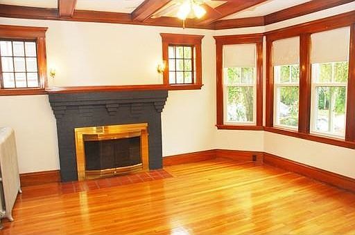 Lovely First Floor. Beautiful living room with decorative fireplace, hardwood floors, wall of windows. Formal dining room with beamed ceiling. Newly renovated kitchen with brand new dishwasher and stove. New ceramic tiles on kitchen floor. Enclosed porch/office off kitchen with adjacent large butler's pantry. Spacious two bedroom plus office or studio. Has shared yard and wide front porch. Washer and dryer for tenant is in basement. Gas heat. Excellent location in central Jamaica Plain, Pondside. Easy parking on this little short street. Near Green line to Longwood area and near Jamaicaway and the Emerald Necklace Bike Path. Neighborhood close to Jamaica Pond. Walk to Whole Foods Market. No pets. No smoking. Amazing value.