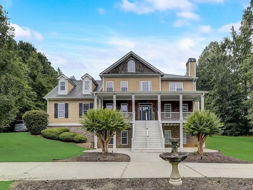 Come take a look at this custom-built home with over 5000 sq/ft of living space. This home is situated in the prestigious Lake Redwine community, which features a 300-acre lake with a marina, clubhouse, two pools, playground, tennis & pickleball courts, and located within minutes of Historic Newnan Square, which has amazing eateries, shopping, and nightlife. Open the door and you will find a two-story foyer with soaring ceilings, tiled floors, stunning woodwork, and trim. A formal dining room is off to the left of the foyer, and a home office/library with a fireplace is situated to the right. Continue into the home and a large family room with coffered ceilings, a stone fireplace, and plenty of natural light radiating from the large picture windows. Around the corner is the kitchen, with a breakfast area, beautiful maple cabinets with plenty of storage, granite counters, a wine cooler, stainless appliances, and two refrigerators for those who like to cook and entertain. Head upstairs and you will find the large master suite with a sitting area, trey ceilings, and a fireplace. The master bathroom will not disappoint, featuring dual vanities with granite, and each one has custom storage space. Walk-in shower with dual shower heads, bench, and nicely appointed tile work. A separate soaking tub and gas fireplace finishes off the master bath, perfect for "me-time" and relaxation. Three guest bedrooms and two nicely appointed guest bathrooms complete the second level. The full basement with a separate entrance finishes off the living space of the home, ideal for an in-law suite, teen suite, or "man-cave." The space has stained concrete floors, a den with a wet bar & fireplace, an exercise room or media room, and a large bonus room for a home office or recreation room, bedroom, and bathroom. Head out to the back of the home and a covered porch overlooks the fenced-in backyard with an inground pool, two gazebos, lush grass, and professional landscape. This is an entertainer's dream home; the summer heat and pool will help convince you that this is the perfect home. School is back in session soon, so come see what Lake Redwine has to offer and make this your home today!