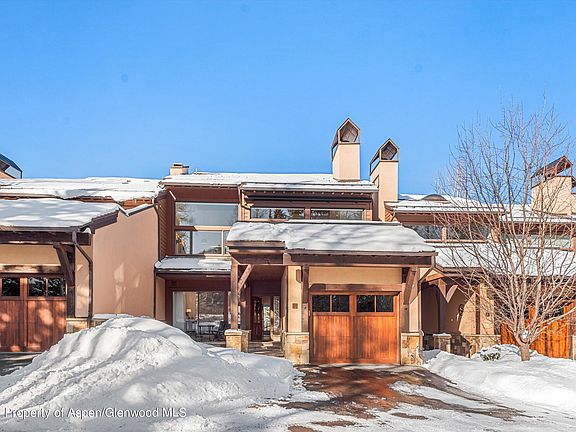 This sunlit south-facing townhome, upgraded in a cool contemporary style featuring new furnishings, offers a spacious retreat. The open-concept great room, accentuated by soaring vaulted ceilings, exudes an expansive feel. Enjoy views of Burnt Mountain at Snowmass Ski Area from the walk-out south patio, where an automatic awning ensures comfort on sunny summer days. The sounds of Brush Creek fill the unit in the summertime. Step onto the brand-new expansive back patio, overlooking Brush Creek, complete with a hot tub and a gas line for a fire pit. The generous primary suite opens to the back patio, while the primary bath indulges with a soaking tub, shower, and dual vanities. Reclaimed Ohio barnwood flooring is throughout the great room, adding a touch of rustic elegance. Ascend the new circular custom staircase in the upper-level guest bedroom, leading to a bonus loft for added versatility. Entryway cabinets, two large mudroom closets (including a backup fridge), and side-by-side laundry with overhead built-ins ensure ample storage space. Park your car, bikes, and toys in the convenient 1-car garage, keeping them sheltered from the snow. The Two Creeks Ski Lift is a mere 5 minutes away, accessible via the nearby skier shuttle. With only six units in the complex and a shared yet private driveway, this townhome offers an exclusive and intimate living experience. New TVs and Sonos speakers enhance the overall ambiance. Your mountain retreat awaits at Snowmass Country Club Townhome #54.