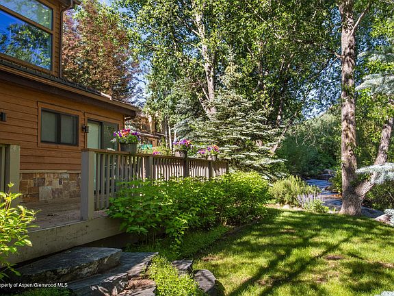 Highly desirable end-unit townhome located just a short walk to the ski shuttle and the Snowmass Club. Upper living area, kitchen, dining room and den offer mountain views and natural light. Two outdoor entertaining spaces: a sunny deck upstairs and a spacious patio on the lower level overlooking the creek. Exquisite landscaping and contemporary water feature at the entry and the sounds of Brush Creek flowing through the back yard. New stainless steel appliances in kitchen. The master bedroom and closet were remodeled in 2018. Additional features include a den that converts to a sleeping area, an oversized one-car garage with built-in storage, maple wood cabinetry throughout, marble bathrooms and a wood-burning fireplace.