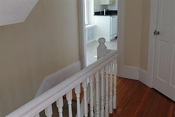 Three bedroom plus office and two bath unit located on the second and third floor of a two family home. Large eat in kitchen with granite counters,new cabinets, and walk in pantry. Living room, small office and bedroom and one full bath also on this level. Hardwood flooring in all rooms except kitchen is laminate flooring. Second level has two bedroom(carpet) and full renovated bath with over sized tile shower. Great closet space, private washer/dryer in basement, 2 car off street parking, yard, walk to center. Terms: 12 month lease, good credit and rental history a must!! First month, security, half month fee