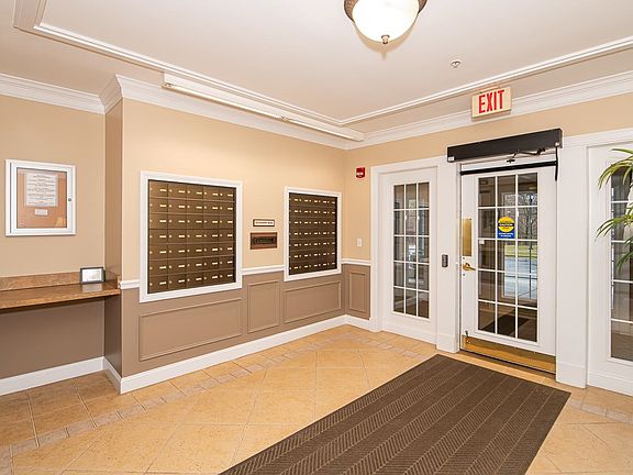 Welcome home to Riverwalk at Bedford! Premier location on the first floor in this well-maintained 2 bedroom, 2 bath unit with many upgrades including Hardwood flooring, Crown Molding, Wainscoting, Granite counters. Carefree living at its best at the desirable over 55 community where only one occupant needs to be 55+. Open concept living with kitchen, dining room and living room. Primary bedroom suite includes a sitting area with direct access to the outdoor covered patio, generous sized closets, jetted tub and walk-in shower. The second bedroom is perfect as a guest suite, office or den with easy access to the 3/4 guest bath. Separate laundry room with W/D included. There is a heated garage under the building with a secure storage unit and 1 deeded parking space accessible by elevator. The building features a theatre, exercise room, game room with bar and pool table, library/computer center, gathering room with a beautiful fireplace for larger functions. Plenty of guest parking and close to shopping, restaurants and all Bedford has to offer. Unit is beautifully furnished and the furnishings (minus contents) can be included. Listing agent is related to seller.