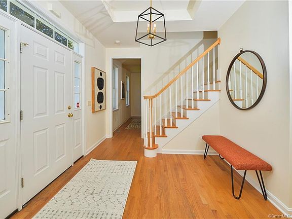 Pristine colonial on wonderful South Wilton cul-de-sac, with peaceful, level backyard just waiting for your games and sports. Wonderful summer entertaining on the deck, and large, open kitchen with island opens to family room, both with 9+ ceilings. Formal dining room off kitchen and cozy office on first floor offers private work space away from the hub of the house. Four nice sized bedrooms upstairs, primary bedroom has walk-in closet and full bath with double sinks, Jacuzzi tub and stall shower. This light and bright house has a real plus: a walk-out lower level with 9-ft ceilings, and sliders to the great outdoors! Use your imagination to create new spaces, or enjoy the carefree feeling of having lots of storage and a casual place for woodworking and ping pong. Oversized two-car garage and a location in great demand. A dog-walkers paradise, and commuter's dream. Award-winning Wilton Schools, shopping, hiking trails all just 7 minutes away. South Norwalk train station 14 minutes, Westport station 11 minutes. Merritt Parkway 10 minutes! NYC: 1 hour. The perfect package to start your next journey.