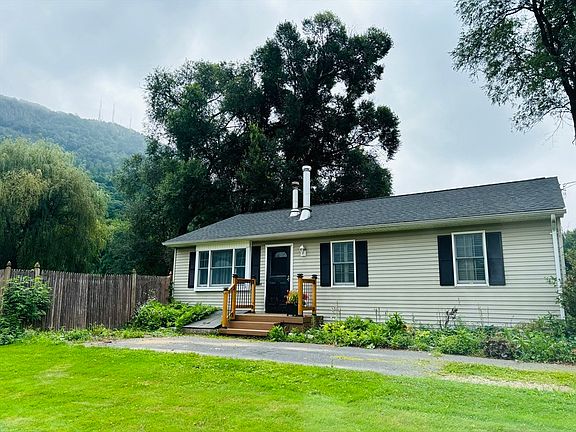 Beautiful location for this charming ranch. Three bedrooms with custom wood window shutters and ceiling fans. Livingroom has pellet stove that keeps entire house heated all winter. Spacious eat in kitchen that opens to large fenced in yard. Basement has large, finished room with a pellet stove. Recent updates include new roof and gutters in 2023, fresh paint and new carpets in bedrooms (2024).