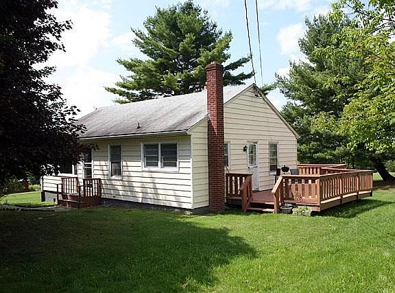 This airy, bright ranch is in good condition and offers a nice low-maintenance lifestyle in a tranquil setting. The large, inviting deck is a great place to relax, enjoy the outdoors, and entertain. Located on a quiet road, with views of pastoral fields and stone walls, this is easy living in a quiet location. House has been nicely renovated and features hardwood floors, tiled bathroom and kitchen counters. Drive right into the 1-car garage under the house, and enter the spacious basement from there. Mature trees and plantings complement the setting.