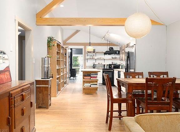Come inside and you will be wowed by this updated and stylish mid-century cottage with a separate apartment. Features include an open plan with amazing sunlight, original hardwood floors, vaulted ceilings with exposed beams, modern fixtures and an incredible master suite with a private deck and wood stove. Renovated industrial style kitchen with open shelving and a butcher block island. Full apartment (4th bed and 3rd bath in apt). Fantastic yard perfect for gardening. See brochure for details.