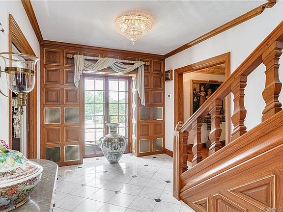 Iconic brick Tudor situated on over 1+ acres. Glorious floor plan for entertaining and living. Old world craftsmanship and updated details. Stately home offers elegant living for today's lifestyle. Beautifully appointed w/large formal rooms and 6 fireplaces. Updated kitchen and master bath. Fireplaced library w/built ins. All new windows except where there is leaded glass. Decorated by Peter Robbins. Banquet sized DR w/fireplace and 2 corner cabinets. LR w/F.P. lots of windows and exit to porch. 5 bedrooms, 4 beds en suite Br's all upstairs. 4 Full baths 2.1 bath. A/C 4 zones 1 zone heat. Underground irrigation, 3 porches, alarm, 3 new garage doors, gas heat systems approx 5 years old. Gym and 5 person sauna