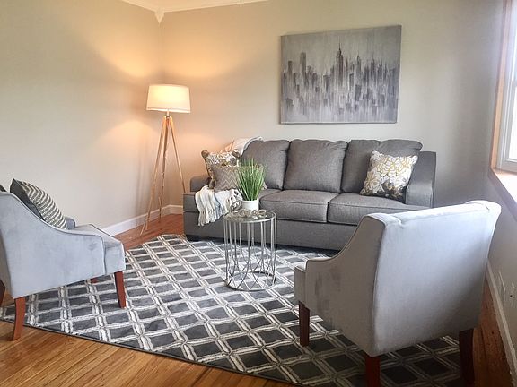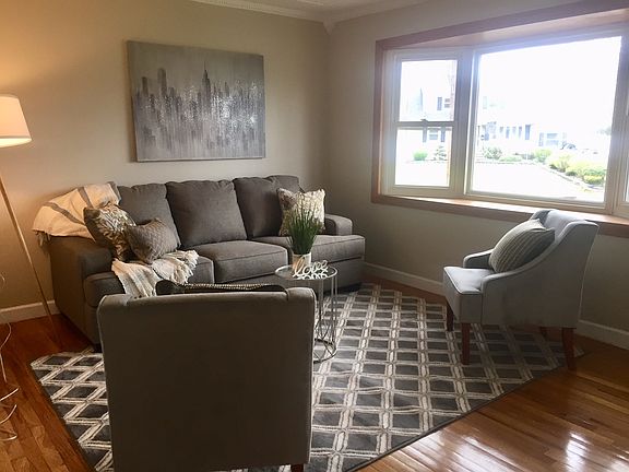 Three bedroom cape in a nice neighborhood ,Eat-in kitchen leads onto a large deck ,new S.S appliances .Hardwood floors .New furnace.New water heater .New AC .2nd floor with a loft area, master bedroom with new full bathroom .Full finished basement . Freshly painted. Large fenced in yard. Close to parks & transportation .